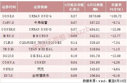Wind数据显示,截至6月19日,本月以来美股656只小市值股票(指5月底市值不足0.5亿美元的个股)的平均涨幅为28.83%,而同期道琼斯指数、标普500指数、纳斯达克指数的涨幅分别为1.92%、1.76%、4.81%。这期间,五大科技龙头FAGMA的平均涨幅不足7%。