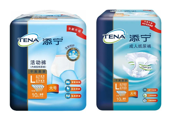 添宁干爽易穿活动裤(左)&添宁干爽亲肤纸尿裤(右)
