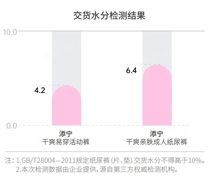 此外,本次检测还对两款添宁纸尿裤的交货水分指标进行了测试。