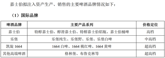 除了解决同业竞争承诺问题,重庆啤酒在公告中还指出,通过本次交易,重庆啤酒品牌矩阵将再度扩大。嘉士伯拟注入资产广泛分布于新疆、宁夏、云南、广东、华东等地,涉及啤酒品牌包括嘉士伯、乐堡、凯旋1664等“国际高端/超高端品牌”,也包括乌苏、西夏、大理、风花雪月、天目湖等“地方强势品牌”。