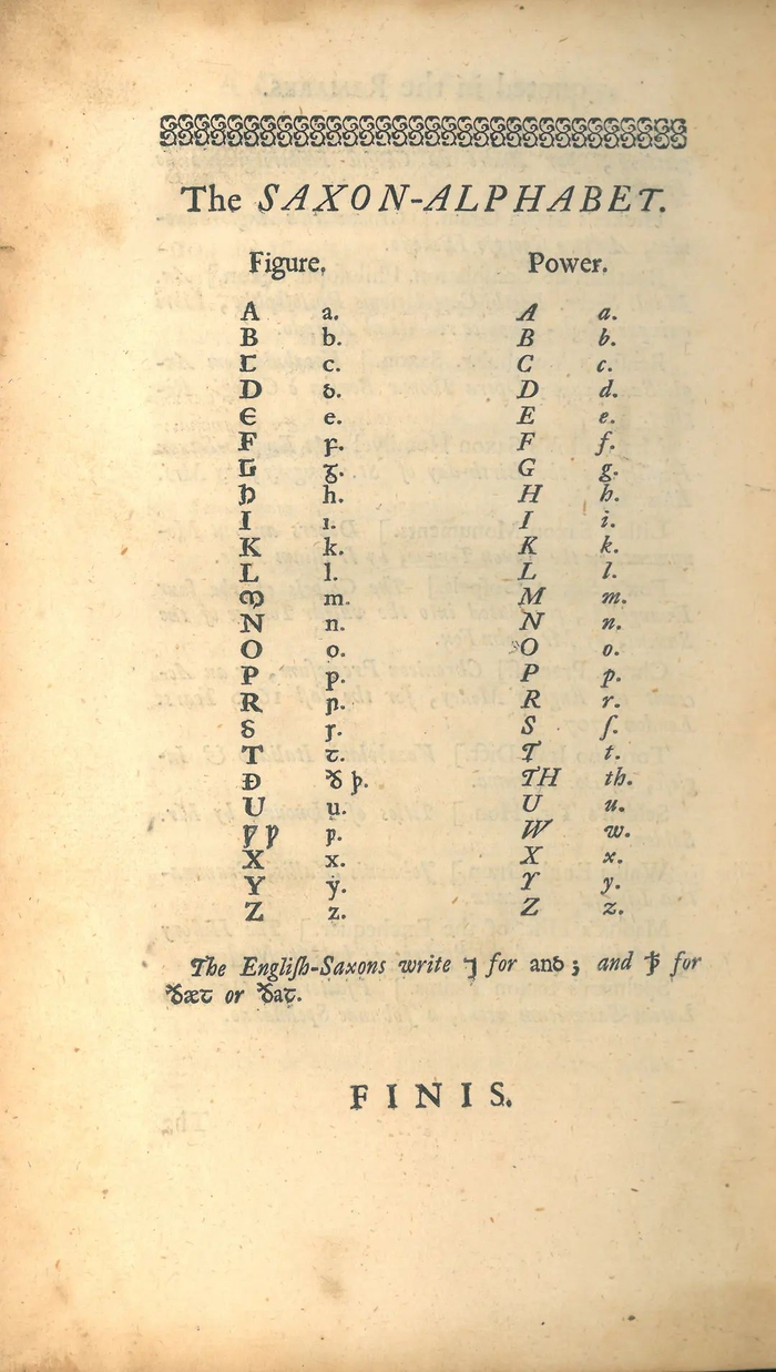 英国政治家约翰·福蒂斯丘书上所列的撒克逊字母表(古英语字母表)