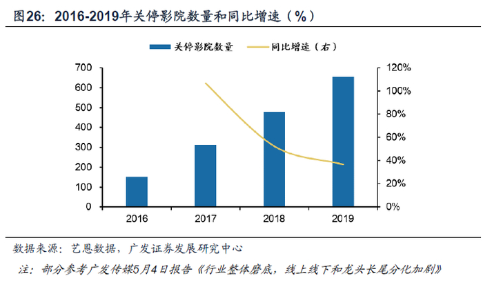 影视院线:2019年全国关停影院656家,银幕2937块,分别增长36.95%和36.48%。其中中小影院,老影院关停率较高。行业本已处于落后供给逐步淘汰阶段。受新冠疫情的影响,全国影院持续停业,截至当前,影院仍未有恢复迹象。另外相对比于其他行业,影院的内容供给和人群线下消费的意愿恢复还需要一段时间,疫情影响的程度更大,时间更长,在此期间,影院还需要承担较高的租金成本和人力开支。具有较大负债压力,且无充裕的现金储备的长尾影院或因此关停,加速出清。