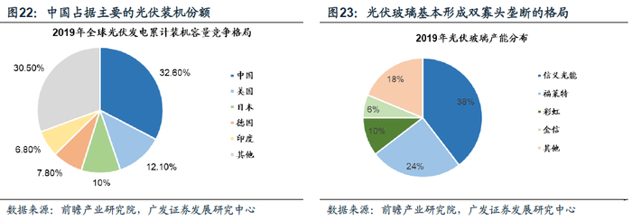 光伏:据前瞻产业研究院数据表明,2019年我国累计装机容量为204.7GW,占全球光伏装机容量的32.6%,远远领先其他国家(第二名美国为75.9GW,第三名日本为63GW)。整个光伏行业中,多晶硅CR7行业集中度由2017年65%上升至2019年78%;光伏玻璃行业则形成了双寡头局面,CR2占据62%市场份额。疫情期间供给端承压,加速行业技术升级和成本竞争,叠加光伏龙头公司大规模扩产,行业集中度有待进一步提升,龙头企业优势显著。组件环节的价值会凸显,一体化龙头之间的竞争会加剧。拥有渠道优势和成本优势的一体化企业最终会胜出。而硅料环节落后产能退出,市场份额向龙头企业集中。硅料占整个系统的成本进一步下降,从而对价格上行的容忍度增加。尽管光伏需求的复苏仍有待进一步观察,但近几年优化的供给格局为龙头空间的修复弹性提供了较好支撑。