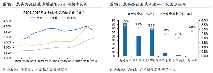 3.1 行业供给格局已经相对较优,疫情后需求恢复将带来较大修复弹性 部分行业在前期的行业集中度已经较高、供给格局相对稳定、龙头议价权强,疫情期间需求明显回落、疫情后期需求恢复可期将带来较大修复弹性:白电、水泥、光伏。白电:自2012年以来,伴随着家庭住户家电保有量和基数的上升以及家电下乡刺激计划的结束,家电的需求增速放缓,逐步迈入存量竞争的时代。政策红利和增长红利的退出使得行业进入整合阶段,规模效应和品牌效应逐步体现。到了2019年,空调和洗衣机CR3已经高达70%,相比之下,电视机等黑电因为技术革新快、国企多难出清等因素,行业格局依旧分散,因此白电和黑电也就产生了明显的盈利能力和估值差异,同时白电龙头公司的议价能力也大幅上行。国内空调市场基本形成双寡头垄断的格局,而冰洗则由海尔占据30%以上的份额,白电的龙头格局已经较为明朗,形成了较为稳定的产业格局,且空调行业龙头已形成了联手打击新进者的能力,市占率还有进一步提升的空间。伴随着竣工链条和海外出口链条的修复,白电的需求将逐步复苏,稳定的产业格局和相对集中的市占率将为龙头公司带来更强的修复弹性。