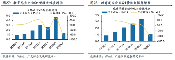 教育(K12)。根据部分教育行业龙头的一季度财报数据,受疫情的重大不利影响,各大线下教育龙头在一季度均遭受了停课、招生困难等对现金流造成的创伤。龙头企业遭遇寒冬的同时,无力转型线上的地方性中小规模连锁机构却仍将面对租金和人力资源成本,处境更为艰难,相应出清更快。尽管行业遭遇了重大冲击,但供给的快速出清也将为幸存者在后续需求恢复后的提供更为广阔的修复空间。线下机构被动加速线上化能力布局之后,原本业务的地域界限也被突破,头部在线教育机构同时抢占部分三四线城市的线下教育需求。拓宽了业务开展的可能。