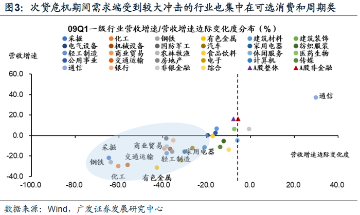 从需求角度而言,本次可选消费类和部分周期类行业受到的冲击更大,相应也就更易发生供给出清。