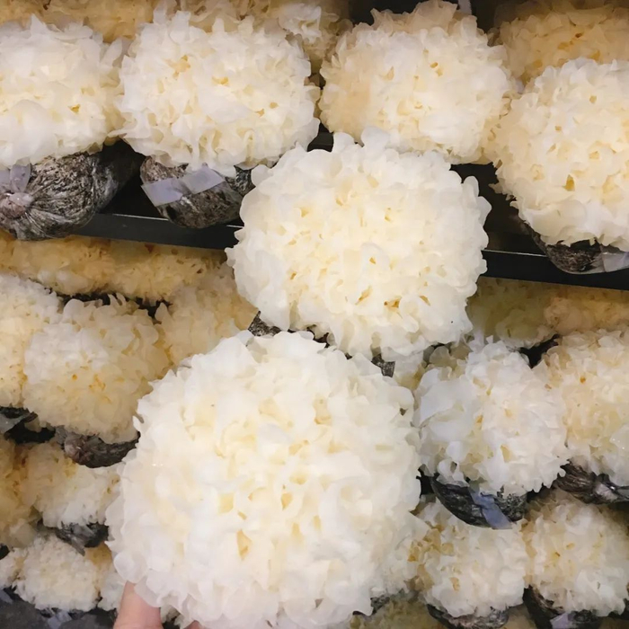银耳自然生长,长成后不用硫磺熏,本身带着淡淡的乳黄色。