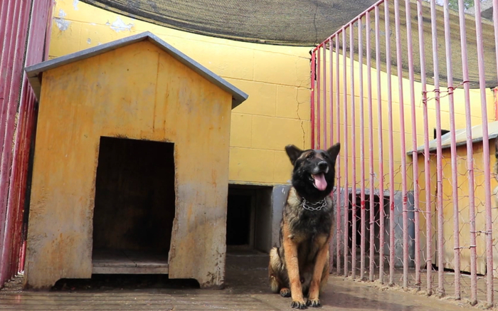 炎龙入伍8年多,如果按照人类的年龄来换算已经50岁,是名副其实的边防“老兵”。这些年,也有多条军犬因蚊虫叮咬牺牲。为给炎龙驱离蚊虫,官兵们专门搭建了犬舍和蚊帐。