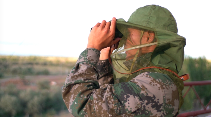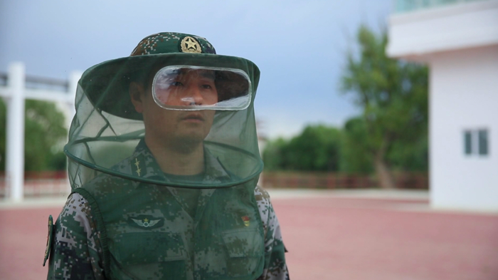 尽管是夏天,官兵们站岗执勤时,仍穿着厚厚的防蚊服,戴上防蚊帽和防蚊手套。他们还会随身携带“三件宝”:风油精、驱蚊药和防蚊纱巾。
