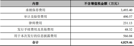 英派斯的发行费用总额为4829.46万元,其中,支付给保荐机构中信证券的承销保荐费用3493.40万元,支付给山东和信会计师事务所(特殊普通合伙)的审计及验资费用490.57万元,支付给北京德和衡律师事务所的律师费用231.13万元。