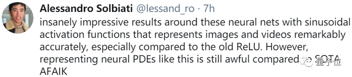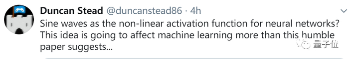 也有网友表示,相较于整篇论文的研究成果,将正弦激活函数用于神经网络这个观点,对机器学习领域的影响显然更大。