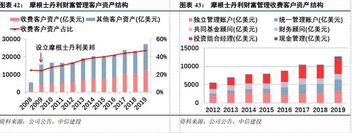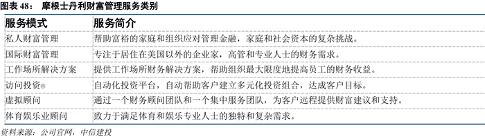 摩根士丹利深耕财富管理全产业链,提供全谱系的账户和服务,这使得摩根士丹利能够满足最广泛客户的个性化需求,提升客户覆盖的广度。