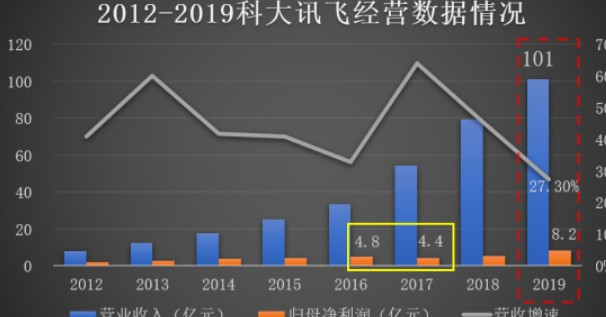 作为国内人工智能领域的龙头企业,想必我们大部分人对科大讯飞都不陌生,输入法、录音笔、翻译机、阿尔法蛋陪护机等等都耳熟能详,甚至还是忠实用户。因此作为一家AI人工智能第一股,科大讯飞历来受关注。今天我们就来看看公司2019年的成绩单:营收100.79亿元,同比增长27.3%,这可是科大讯飞上市12年以来创出的最好成绩。