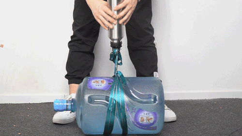 这可能还不够有说服力,我们又整了个大的。搬了一桶水,用绳子系紧然后把它吊在瓶盖上提起来,还是没反应,感觉杯盖和杯身完全就是一体的。