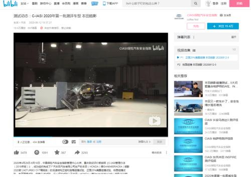 日前,B站UP主“CIASI保险汽车安全指数”发布的本田皓影汽车碰撞测试的视频爆红网络。视频一经发布,立刻引来了广大车主的围观。