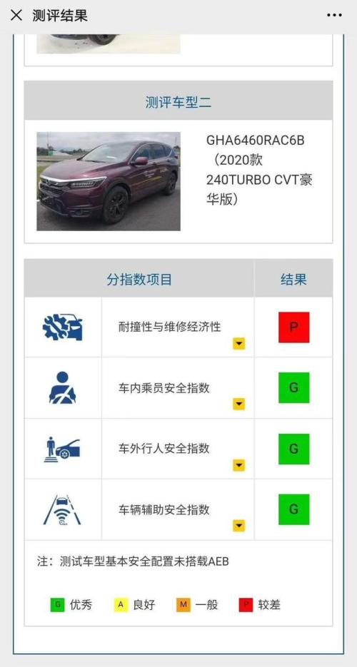 6月19日,有网友发现中国保险汽车安全指数官方网站上公布了本田皓影的“测试结果”,并将测试结果截屏发布在网络上。