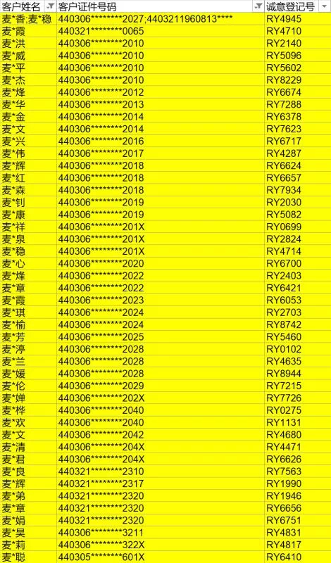 “因为认筹者中大部分是光明区的居民,特别是光明区的麦氏家族,身份证号前6位代表的是省、城市、区县,后四位的前两个数是所在派出所,倒数第二位是性别,最后一位是校验码。”上述光明区住建局工作人员解释,“而最后一位校验码相同,只能说真的仅仅是一个巧合。”