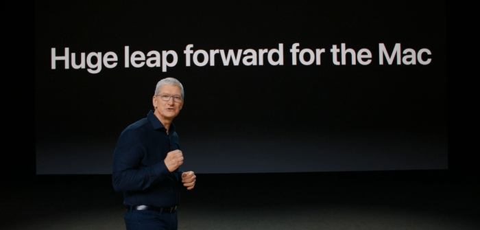 苹果CEO蒂姆-库克在演讲中称这是“Mac历史性的一天”,同时详细介绍了Mac系列从 PowerPC、OS X 10以及转向英特尔芯片的过渡,然后公布了未来在Mac中使用苹果自己的ARM驱动芯片的计划。