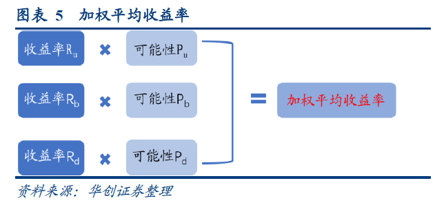 最后,根据上述三种情况发生的可能性,给三种情况赋权,发生的可能性越大赋予的权重越高,最后得出高收益债加权平均收益率(Ru*Pu+ Rb* Pb+ Rd*Pd)。