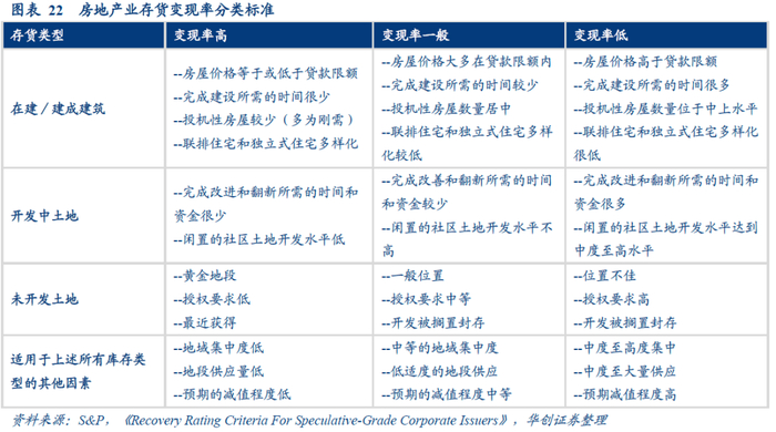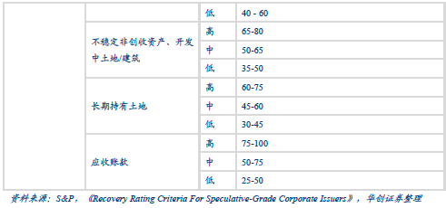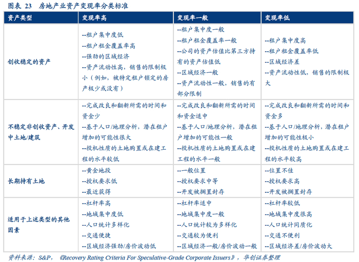 本文根据标普数据整理出以下单个资产的变现率范围: