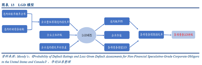 2、针对B1及以上的企业,穆迪以LGD模型为核心进行测算: