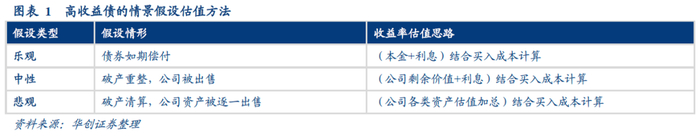 为了区分不同的情况下,濒临违约的债券的收益率的计算方式不同,我们将可能的情况假设分为三种:乐观假设、中性假设、悲观假设。