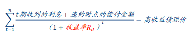 乐观假设之下,发债主体经历了短暂的财务困境后,主体信用基本面得以改善,收入逐渐恢复增长,在此期间,公司没有触发保护性条款,债券顺利到期偿付。这一假设之下的收益率公式如下: