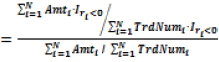 在这里我们进一步定义了大单K线的概念,即I{ri<0,i∈IdxSet}表示该K线是否为全天所有K线当中,平均每笔成交额最大的前10%的K线。