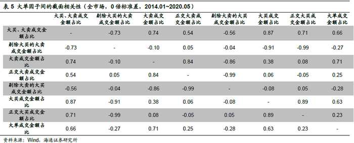 上表为所有大单因子的之间的截面相关性,我们可以从中发现以下特征: