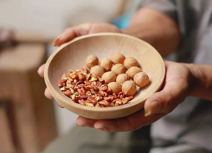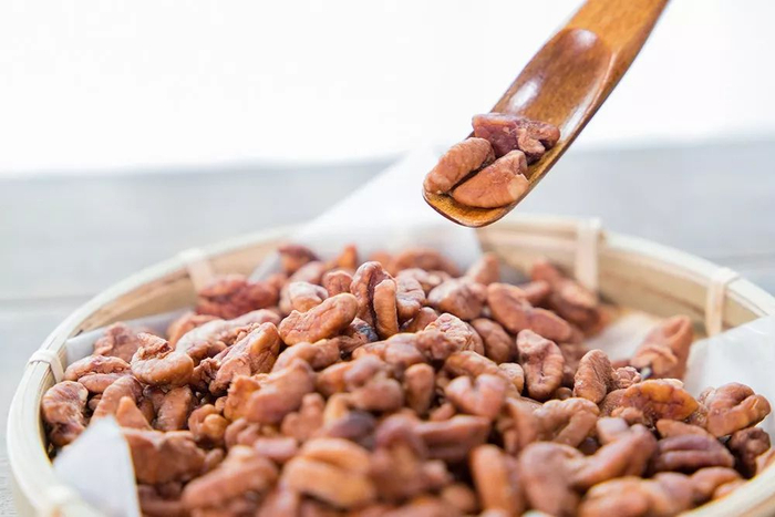 几百年来,一直沿用土灶古法秘制核桃仁。核桃仁经祖辈传承的煮料秘方熬煮、烘烤后,香甜酥脆。