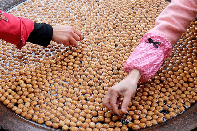 采摘艰难,要做出好吃又不涩的山核桃仁更不容易。这有赖于临安传承的古法工艺。