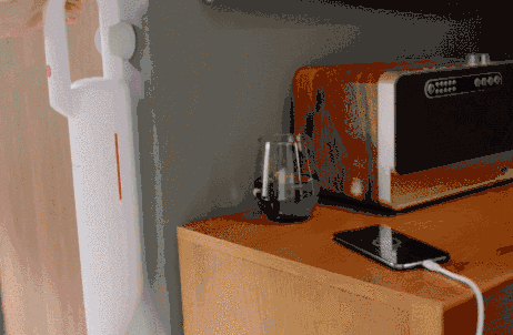 吸尘器带硅胶挂架,轻松固定,不会乱倒、乱动,随便找个角落就能放,不占地。