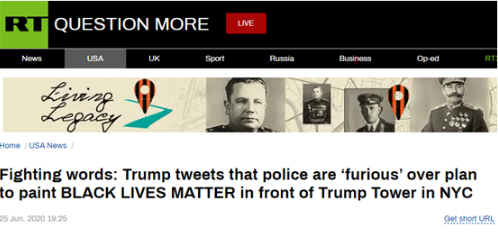 RT:特朗普发推称纽约警察会对纽约市计划在特朗普大厦前涂上“黑人的命也是命”感到愤怒