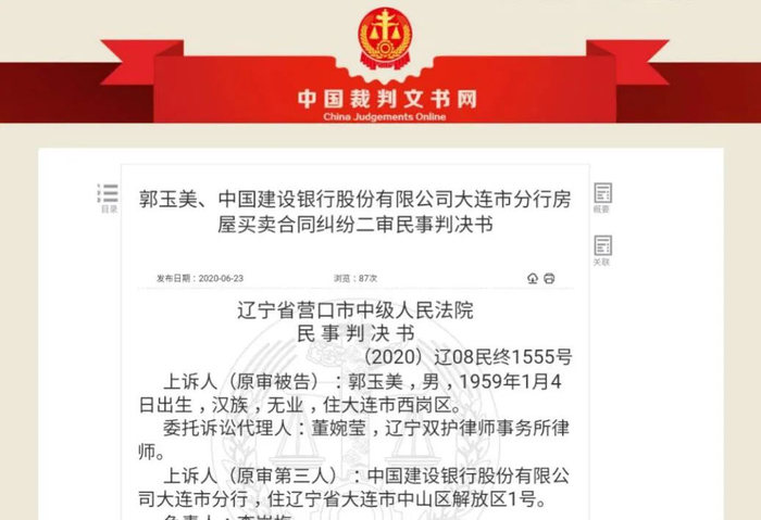 裁判文书网23日公示的判决书显示,在一审判决买卖合同无效的情况下,作为第三人的银行却坚持提起上诉,让张静作为还款人还清房贷,并保留房子抵押权。