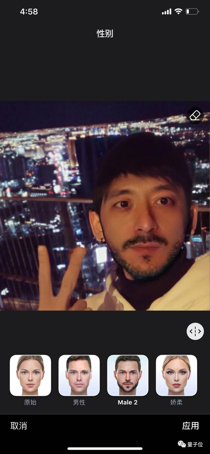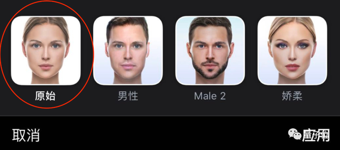 重点看下方UI的4个按钮:FaceApp把「原始」设定成了女性。