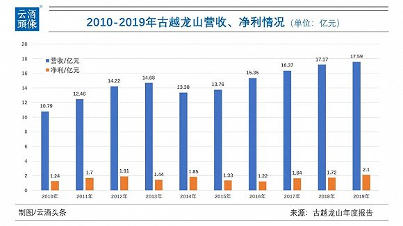 但云酒头条(微信号:云酒头条)在梳理古越龙山2010-2019近十年来的财报后发现,其业绩增长依然面临着诸多困扰。