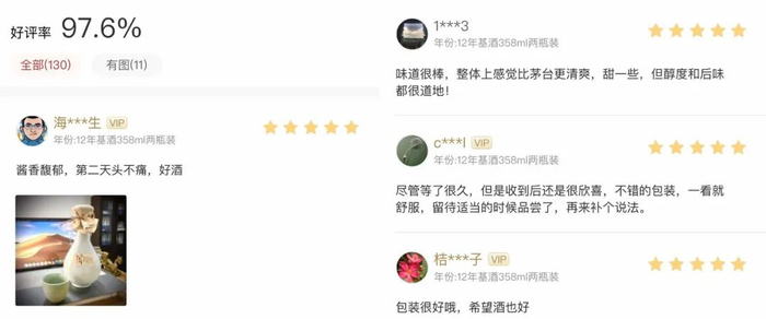 这款酒深受大家喜爱,好评如潮,在一条APP上,好评率高达97.6%(截止2020年6月10日)。