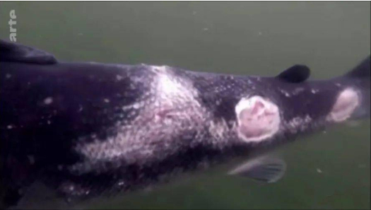 调查记者私自带着摄像机潜入了挪威三文鱼养殖场,“我知道会看到鱼因为拥挤而喘不过气,但眼前的景象更为恐怖:大量鱼挤在肮脏、充满它们排泄物的海水里。许多得病的三文鱼身上布满大如手掌的溃疡,有的已变成S型畸形鱼”。统计表明,养殖三文鱼的死亡率高达20%,此外,高密度养殖也让鱼虱泛滥成灾。