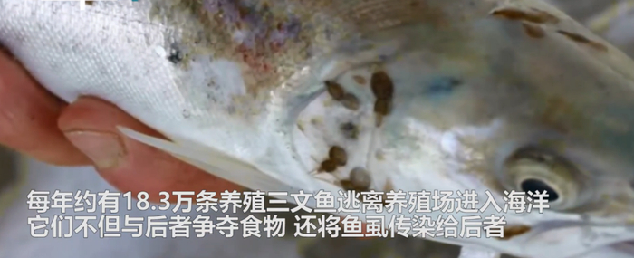 除了养殖条件恶劣,人工养殖的三文鱼还威胁到了野生三文鱼的生存。挪威海洋研究所研究员斯卡拉表示,目前挪威野生三文鱼数量约为53万条,人工养殖的则有4亿条。每年约有18.3万条养殖三文鱼逃离养殖场进入海洋。它们不但与后者争夺食物,还将鱼虱传染给后者。