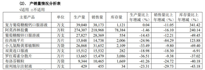 葡萄糖酸钙口服溶液、葡萄糖酸锌口服溶液等产品曾在央视投放广告,以口味和包装等给人们留下了深刻印象。如今,两款产品的生产量和销售量却大大下滑。2019年年报显示,葡萄糖酸钙口服溶液销量比上年减少11.05%,葡萄糖酸锌口服溶液销量比上年减少12.21%。