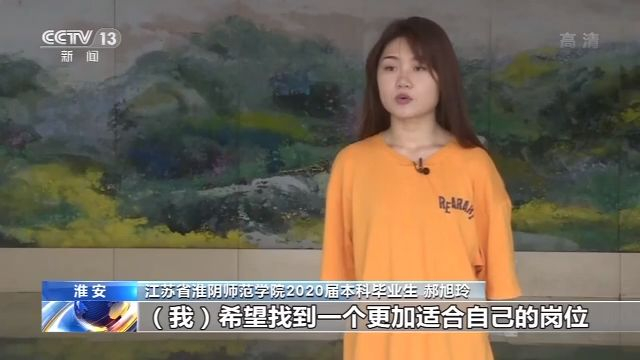 江苏省淮阴师范学院广播电视编导专业2020届本科毕业生 郝旭玲:今年受疫情影响,很多中小型企业工作岗位减少,(我)希望找到一个更加适合的岗位,所以处在一个观望的阶段。