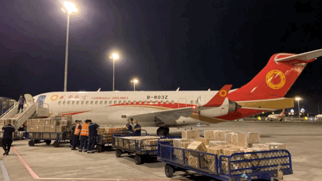 6月13日,成都航空的ARJ21飞机搭载近5吨普货快件从成都飞往深圳,这是ARJ21飞机首次执行”客改货“航班。通过拆除座椅的改装,可以使载货量增加90%。