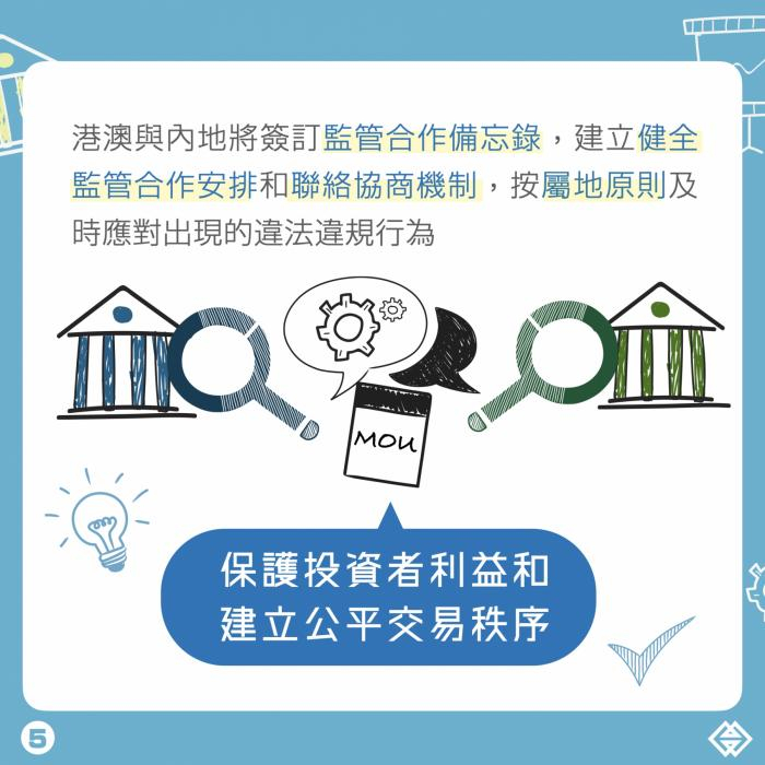 港澳与内地相关监管机构将各自采取所有必要措施,确保双方以保障投资者利益为目的,在“跨境理财通”下建立有效机制,按属地管理原则及时应对出现的违法违规行为。港澳与内地相关监管机构将签订监管合作备忘录,建立健全监管合作安排和联络协商机制,保护投资者利益和建立公平交易秩序。