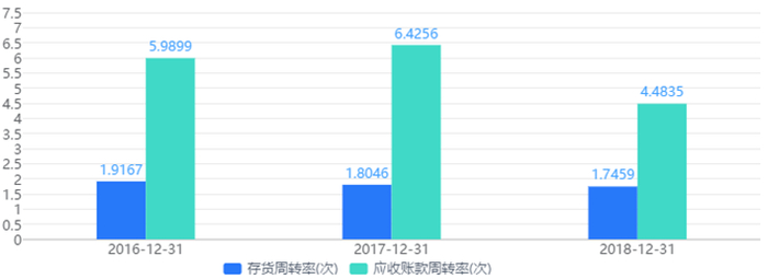 2016年-2018年分别为1240.11万元、1159.35万元以及3358.06万元,仅2018年应收账款的增长率就达到了189.64%,同时应收账款占销售收入的百分比高达33.16%,是2016年和2017年相关数据的一倍之多,随之而来的也是2018年当年的应收账款周转率急剧下降,明显低于历史同期水平。