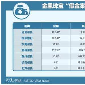 汇总一下发现,金凰珠宝以及贾志宏用黄金做抵押贷款了200亿,目前还有160亿没到期,对应抵押83.03吨黄金,11家金融机构中招,三个受伤大户,民生信托、恒丰银行、东莞信托,踩雷资金都在30亿以上。
