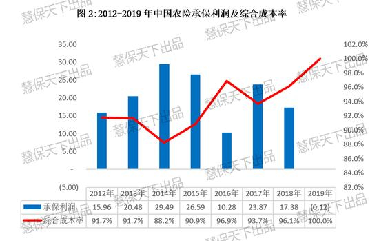 农险曾经连续多年承保盈利,2012-2018年这七年间累计实现承保盈利144亿元,综合成本率始终保持在97%以下。但2019年受“非洲猪瘟”及东部沿海的台风、暴雨等重大自然灾害影响,综合成本率首次突破100%,承保亏损0.12亿元。