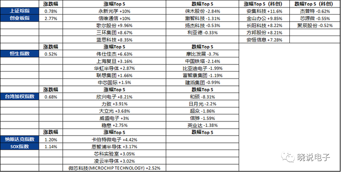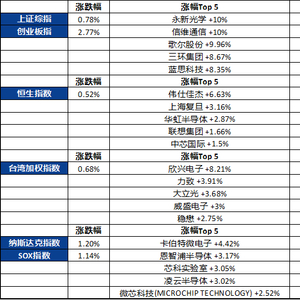 全球电子板块市场行情一览