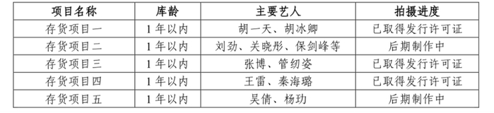 截至2019年末,华录百纳存货余额前五名的影视作品合计2.51亿元,占存货余额的87.19%,具体如下: