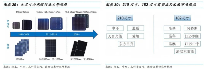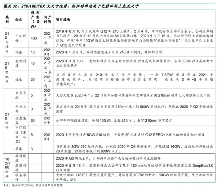 •除中环外,天合光能、爱旭、东方日升、通威、宁夏小牛等众多厂商也开始着手布局210尺寸产品。