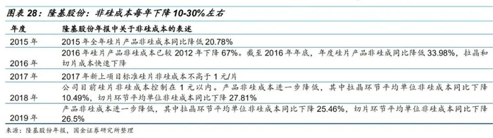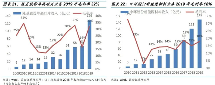 •单晶硅为光伏产业链中利润最丰厚环节。我们测算隆基股份2019年60-70%的净利润来自单晶硅环节。